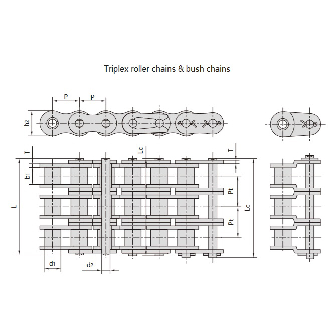- Rentang Ukuran Pitch yang Luas:Dibuat dengan ukuran pitch mulai dari 6,35 mm hingga 76,2 mm, mendukung desain riveted atau split, serta rantai tunggal, multiple, atau triple.
