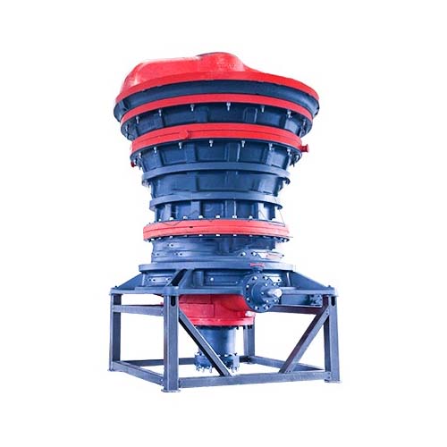 Berbasis mekanisme penghancuran ekstrusi kontinu. Peralatan terdiri dari bagian balok silang, bagian bingkai atas, tengah, dan bawah, bagian kerucut dinamis, bagian selongsong eksentrik, bagian transmisi, dan bagian silinder hidraulik. Motor listrik menggerakkan poros horizontal untuk berputar, dan gerakan tersebut diteruskan ke selongsong eksentrik melalui gigi, yang kemudian menggerakkan bagian kerucut untuk berayun secara melingkar guna menyelesaikan proses penghancuran bahan batu.
