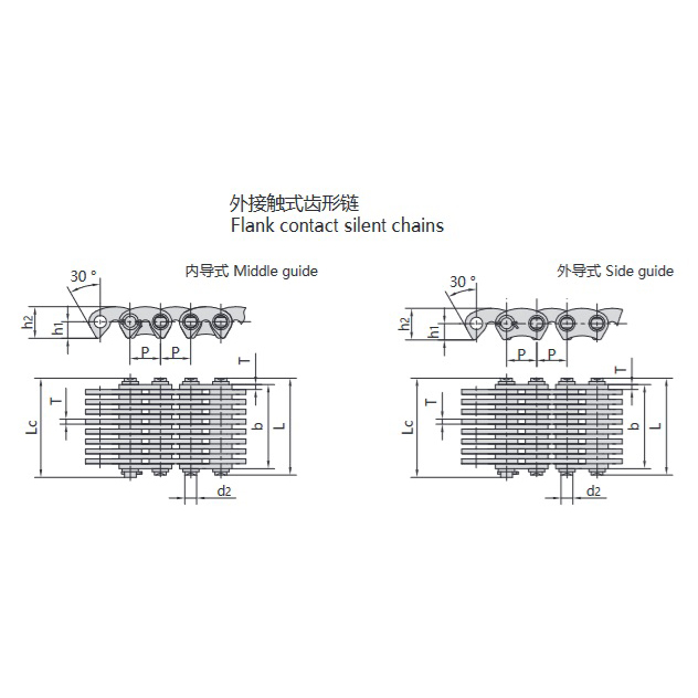 • Rantai Gigi yang Terhubung Secara Internal dan Eksternal:Menggabungkan keunggulan pengaitan dalam dan luar. Ideal untuk kondisi kecepatan tinggi, kecepatan variabel, dan beban variabel. Meminimalkan efek poligonal, getaran, dan kebisingan, sambil meningkatkan efisiensi transmisi.